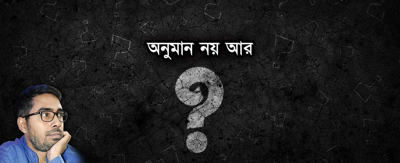 আসুন অনুমান করা বন্ধ করি। কিন্তু অনুমান তো জরুরি একটি বিষয়। জ্ঞান অর্জনের পক্ষে অনুমান একটি গুরুত্বপূর্ণ উপাদান বলে স্বীকৃত। কেননা কোনো গবেষণার ক্ষেত্রে আগের ধারণার ওপর দাঁড়িয়ে সমাধানে পৌঁছুতে অস্থায়ী সিদ্ধান্ত নেওয়া হয়। এই অস্থায়ী সিদ্ধান্তই হলো অনুমান। ইংরেজিতে একে বলে হাইপোথিসিস।
