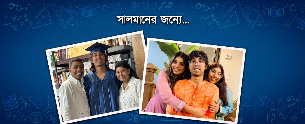আজকে আমার সর্বকনিষ্ঠ সন্তান সালমানের কলেজ জীবনের প্রথমদিন। তার জীবনের বড় বড় পদক্ষেপের এটি আরেকটি নতুন সূচনা। তবে আজকের দিনটি শুধু সালমানের জীবনের স্মরণীয় দিন নয়। একজন বাবা হিসেবে আমার, মা হিসেবে আমার স্ত্রীর, বোন হিসেবে আমার কন্যাদের- মানে আমাদের পরিবারের সকলের জীবনেই আজকের দিনটি স্মরণীয়। আমার যে কি আনন্দ! কি আনন্দ!
